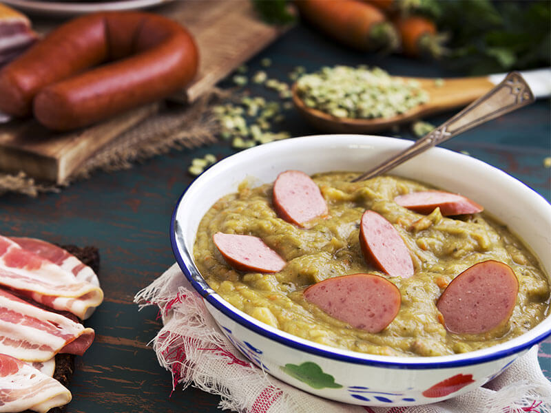 Een makkelijke en smaakvolle erwtensoep, een recept voor slagers. ...