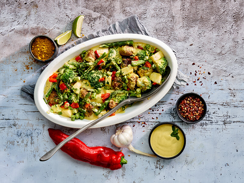 Laat jouw klanten genieten van een smaakvolle maaltijd met groenten en gehaktballetjes in pineapple- ...
