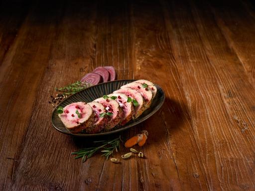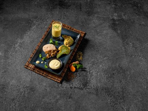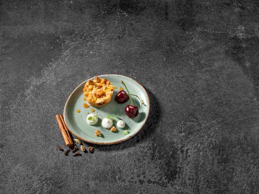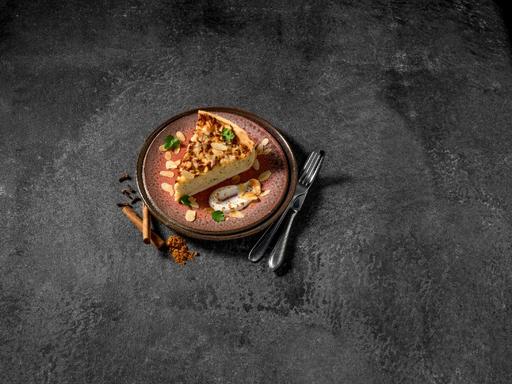Serveer de Pastinaak quiche met een crème van yoghurt, World Spice Blend - Speculaaskruiden en sina ...