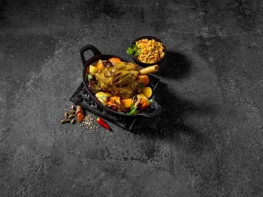 Verdeel de zonnebloemolie over de lamsschenkels en rub deze in met de Curry Madras kruiden ...