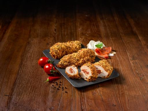 Mozzarella/Chorizo chicken met Spicy Tomato Crispy Breading